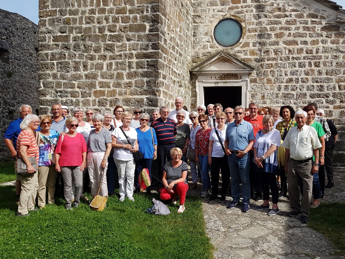 Die Eisenstädter Senioren unternahmen nach Pfingsten eine 4Tages-Busreise nach Triest. Am Anreisetag besuchten wir die Adelsberger Grotte und die Dreifaltigkeitskirche in Hrastovlje mit den berühmten Totentanz-Fresken. Am nächsten Tag stand neben einem Stadtrundgang die Besichtigung der Kaffeeproduktion bei Illy am Programm. Der dritte Tag war dem Besuch des Schlosses Miramare und dem alten Fischerstädtchen Muggia gewidmet. Den Abschluss bildete die Besichtigung der modernen Marienkirche am Monte Grisa und ein Rundgang durch das Schloss Duino der Familie Thurn und Taxis. Während der Fahrt gab's Zusatzinfos in Erdkunde, Biologie und Geschichte von Mag. Adalbert Fuchs und Erich Pichler. Die bewährte Bordstewardess Judith Fuchs versorgte uns wie immer mit Getränken. Wohlbehalten und gut gelaunt kehrten wir nach Eisenstadt zurück.